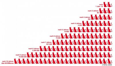 Geht man davon aus, dass ein Katzenpaar zweimal im Jahr Nachwuchs bekommt und jeweils nur drei Junge pro Wurf überleben, sind das sechs Junge im ersten Jahr plus die beiden Elterntiere. Die Jungen aus dem ersten Wurf werden im gleichen Jahr selbst auch drei Junge haben. Die aus dem zweiten Wurf haben ihre ersten Jungen im zweiten Jahr. Nach zwei Jahren haben das Elternpaar und deren Kinder aus dem ersten und zweiten Wurf sich mit den Enkeln schon auf 66 Tiere vermehrt. Nach einem Zeitraum von 10 Jahren kann sich die Nachkommenschaft eines Katzenpaares auf mehr als 80 Millionen Katzen erhöht haben.
