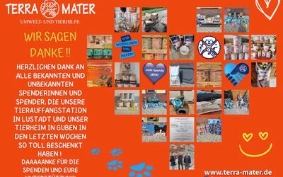 Das sind nur Beispiele für Eure Unterstützung. Wir danken ALLEN für die Geldspenden, Futter- und Sachspenden über unsere Amazon Wunschlisten, private und anonyme Spenden, die per Post kamen oder persönlich in unserem Tierheim in Guben, auf unserer Tierauffangstation in Lustadt und in Graben-Neudorf vorbeigebracht wurden.