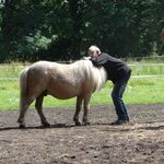 Joey gab sein Bestes auf der Reitbahn, während er von unserem Azubi in verschiedenen Gangarten herum geführt wurde. Abschließend bekam das Pony aus Irland noch ein paar Belohnungsleckerlis und wurde zu seinen Kameraden auf die Weide entlassen.