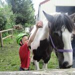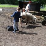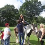 Nun ging es an das Reiten: Die Wahl fiel auf Joey, den kinderliebenden Tinker. Bevor es auf den Pferderücken ging, haben die Kinder mit Unterstützung das Pferd geputzt und gestriegelt. Als Joeys Fell wieder strahlte konnte der Spaß losgehen. Unsere dritte Kuratorin ließ es sich nicht nehmen, selbst auf das Pferd zu steigen. Sie ritt mit jedem Kind seine erste Runde und die Kinder verloren schnell ihre Scheu vor diesen prächtigen und stolzen Tieren.