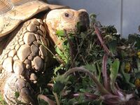Unsere große Spornschildkröte Lotti hat zurzeit nur eines im Blick: den frischen Löwenzahn! Außerdem genießt er es sehr endlich wieder durch sein großes Gehege zu wandern.