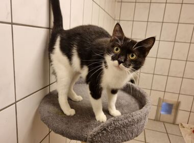 Die schwarz-weiße Katze Laila (geb. ca. September 2021) kam im September 2022 als tragende Fundkatze auf unsere Tierauffangstation in Lustadt. Nachdem all ihre Katzen-Kinder vermittelt wurden, suchten wir lange – bis heute – ein geeignetes Zuhause für die verschmuste und selbstbewusste Laila. Wichtig ist, dass sie als Freigängerin und Einzelgängerin leben darf, viel mehr benötigt sie gar nicht. Laila fühlt sich hier bei uns sehr wohl und wir belassen es auch dabei.
