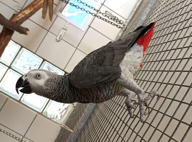 17.09.2024 - Update: Unsere Graupapagei Dame Coco hat sich auf den Weg über die Regenbogenbrücke gemacht. Nun fliegt sie wieder mit einem wunderschönen Federkleid. Unsere Kolleginnen, die für den Vogelbereich zuständig sind, haben Coco am Montagmorgen in ihrem und Karl-Ottos Käfig gefunden. Coco war 2020 als Abgabetier auf unsere Tierauffangstation nach Lustadt gekommen. Damals war sie bereits 27 Jahre alt. Karl-Otto ist nun erst einmal allein in seiner Voliere und muss den Verlust seiner Partnerin verarbeiten. Unser Team vor Ort tut alles um ihm mit besonderer Zuwendung und bevorzugten Leckereien die Situation erträglicher zu machen. In seiner Nachbarschaft leben Artgenossen, zwar keine Graupapageien aber Zwergpapageien wie Wellen- und Nymphensittiche. Uns ist wichtig, dass die uns anvertrauten Tiere, die kein neues Zuhause finden, liebevoll und in Würde bei uns leben und auch in Ruhe sterben können.