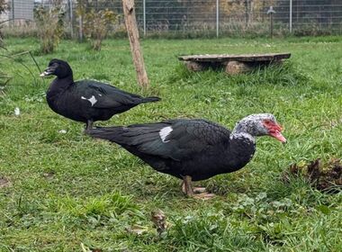 Anfang November 2021 wurden uns 8 Stummenten aus ungeeigneter Haltung vom Veterinäramt übergeben. Die Entenfamilie hatte bis dahin noch nie Wasser gesehen und standen nur auf Matsch und Kot. Unsere Kolleginnen mussten die Enten erst einmal vom Dreck befreien und haben sie anschließend auf dem Gelände der Tierauffangstation in Lustadt angesiedelt. Hier gibt es einen großen Teich, den die Entenfamilie sofort eingenommen hat. Nun planschen Erpel, Mutter und 6 Jungtiere genüsslich rund um die Uhr.