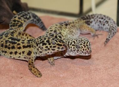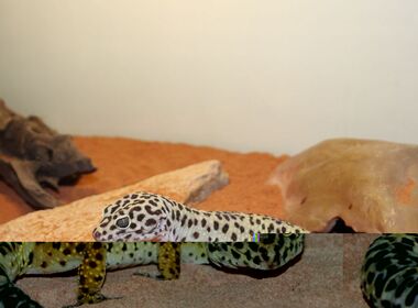 Ghost ist das Männchen und zusammen sind Alien und er unzertrennlich. Die Zwei sind ungefähr 2 Jahre alt. Sie leben bei uns unter artgerechter Haltung und werden liebevoll versorgt. Sie lieben es warm und etwas feucht. Die Leopardgeckos sind hauptsächlich dämmerungs- und nachtaktiv. Ihr Terrarium ist mit Steinen und Ästen sowie höhlenartigen Verstecken ausgestattet. So haben beide genügend Platz sich zurückzuziehen.