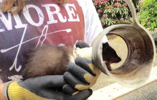 Einem ca. 10 Wochen alten Marder war seiner Neugier zum Opfer gefallen. Er steckte mit dem Kopf in einem Wasserrohr fest und es ging weder vor noch zurück.