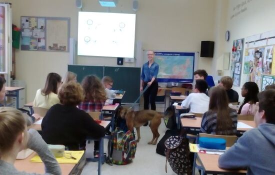 Am 11. April 2016 traf sich die Klasse 9/2 des Gymnasiums Guben mit der Leiterin unserer Gubener Partnerstation, Kerstin Martin, Azubi Thomas Kramer und Schäferhündin Mira.