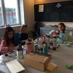 Gefragt war Kreativität und Fingerspitzengefühl. An vorgeschnittenen Pappelsperrholzplatten wurden die Kanten und Ecken abgeschliffen und dann die Zahlen und Namen von Pferden und Huftieren mit Bleistift auf das Holz übertragen. Diese wurden dann in einem zweiten Schritt mit Farbe ausgemalt und verziert. Die Zahlen für die Pferdeboxen entstanden schon etwas früher als die Namensschilder und so zieren diese inzwischen schon den Stall. Die Namensschilder hingegen warten noch auf ihre Endlackierung und durch die entstehenden Dämpfe vor allem auf besser Wetter um diese im Freien lackieren zu können. Nötig ist der letzte Schliff jedoch um die Schilder wetterfest zu machen, sonst wäre die viele Arbeit schnell umsonst gewesen. Sobald diese fertig mit Schutzlack überzogen sind, werden auch sie den Hof etwas bunter machen und die TERRA MATER-Kids hoffen dass sie den Besuchern ein Lächeln aufs Gesicht zaubern und auch den Stallbewohnern gefallen werden.