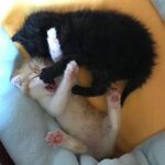 Nach den Fütterungen genießen sie die ausgiebigen Bauchmassagen und Streicheleinheiten. Oft schlafen die beiden dabei auf dem Arm ein oder schnurren lautstark vor sich hin.