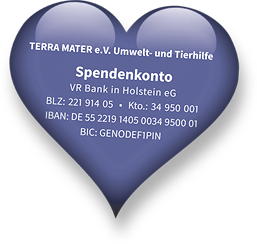 Unser Verein finanziert sich ausschließlich über die Beiträge der Mitglieder sowie durch Spenden. Wir sind eine gemeinnützige, unabhängige Tierschutz-Organisation. Wir erhalten keine öffentlichen Zuschüsse und sind daher auf Spenden engagierter Menschen angewiesen.