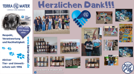 Auf unserer Tierauffangstation in Lustadt freute sich unser Team ebenfalls über die Sach- und Geldspenden. Lieben Dank an Jacqueline, Andrea, Melanie und Alexander, Monica, Petra, Remziye und Tanja für Futter. Danke an: Birgit und Sonja,die zusammen über unser Spendenformular Geld gespendet haben, Jasmin, die eigentlich Haushaltsartikel bei ihrer Arbeitskollegin kaufen wollte, die aber wünschte, dass sie das Geld an uns spenden möge. Das tat sie :O) Und Margit. die verzichtete komplett auf Geschenke zu ihrem 60. Geburtstag und bat um Spenden für TERRA MATER. Puh! Bingo ! Dabei kamen 755€ zusammen. DANKE !!