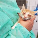 Ein rot-weißer Kater kann kaum aus den Augen schauen, andere niesen ganz schlimm. Sie lassen alle tapfer die Behandlung über sich ergehen und machen das beste aus der Situation. Wie lange sie noch in Behandlung sein werden steht noch nicht fest. Dies zeigt uns mal wieder, wie wichtig die Kastration auch von wilden Katzen ist. Nur so können Würfe vermieden werden, die ganz auf sich allein gestellt und krank ums Überleben kämpfen müssen. Zum Glück wurden unsere 7 Zwerge gefunden und können behandelt werden, um dann jeweils ein gutes Zuhause bei netten Menschen zu finden.