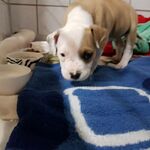 Uns lagen spärliche Informationen vor. Es handelte sich um einen sog. Listenhund, einen „Beißer“, der ungeimpft und illegal aus Kroatien nach Deutschland eingeführt wurde. Was unsere Kollegin dann vorfand, war ein vollkommen verängstigter, maximal 6 Wochen alter American Staffordshire Terrier, der seiner Mutter viel zu früh entrissen wurde.