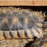 Die Landschildkröten in unserer Station halten Winterschlaf. Sie haben ausreichend Platz sich in geschützten Höhlen mit Stroh und anderem Nistmaterial zu vergraben. Auch Leguan-Dame Anna wohnt in einem beheizten Haus mit UV-Licht und Freigehege. Die Schlangen, Bartagamen und Anna werden sichtbar aufmerksamer und sind interessierter am Futter.
