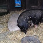„Ich bin jetzt hier draußen bei den Schweinen. Wie es aussieht, haben sie schon etwas abgenommen. Leider kann das Schwein Big Mama aber immer noch nicht so gut laufen. Big Daddy bekommt wegen seiner Epilepsie nach wie vor eine Tablette am Tag. Diese geben wir ihm immer morgens vor der Fütterung. Nadja ist zwar eine Schülerin, aber sie ist die Reinigungsfrau bei den Tieren. Das kann sie echt gut. Heute macht sie bei den Tieren einen Frühjahrsputz.