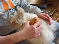 Die Tiergestützte Pädagogik konnte zur großen Freude vieler SchülerInnen während der ganzen Zeit als Einzel- oder Gruppenangebot weiter stattfinden. Es sind sogar ein paar neue Kaninchen eingezogen, eines davon hat sehr lange Haare und muss regelmäßig von den SchülerInnen gekämmt werden. Diese Aufgabe benötigt Ruhe und Geduld und genau das können alle Kinder gerade gut gebrauchen.