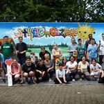 Im Herbst letzten Jahres gestalteten 12 Kinder zusammen mit den Graffitikünstlern Chris Riley und Jose Herbella die Garage am Rand des großen Schulhofes neu und verwandelten das triste Grau in ein buntes Gemälde mit Regenbogen für den kommenden Tierhof. Es wurde und wird alles herausgeputzt, gestaltete bunte Holzbretter verleihen dem Stall neuen Charme. Hier werden die Ziegen und die Schweine einziehen und die kleinen Nager bekommen ebenfalls eine neue Herberge. Die Hühnerschar kommt in einem geräumigen Gehege am Stall unter. Die großzügige Wiesenfläche steht den Tieren darüber hinaus zur Verfügung.
