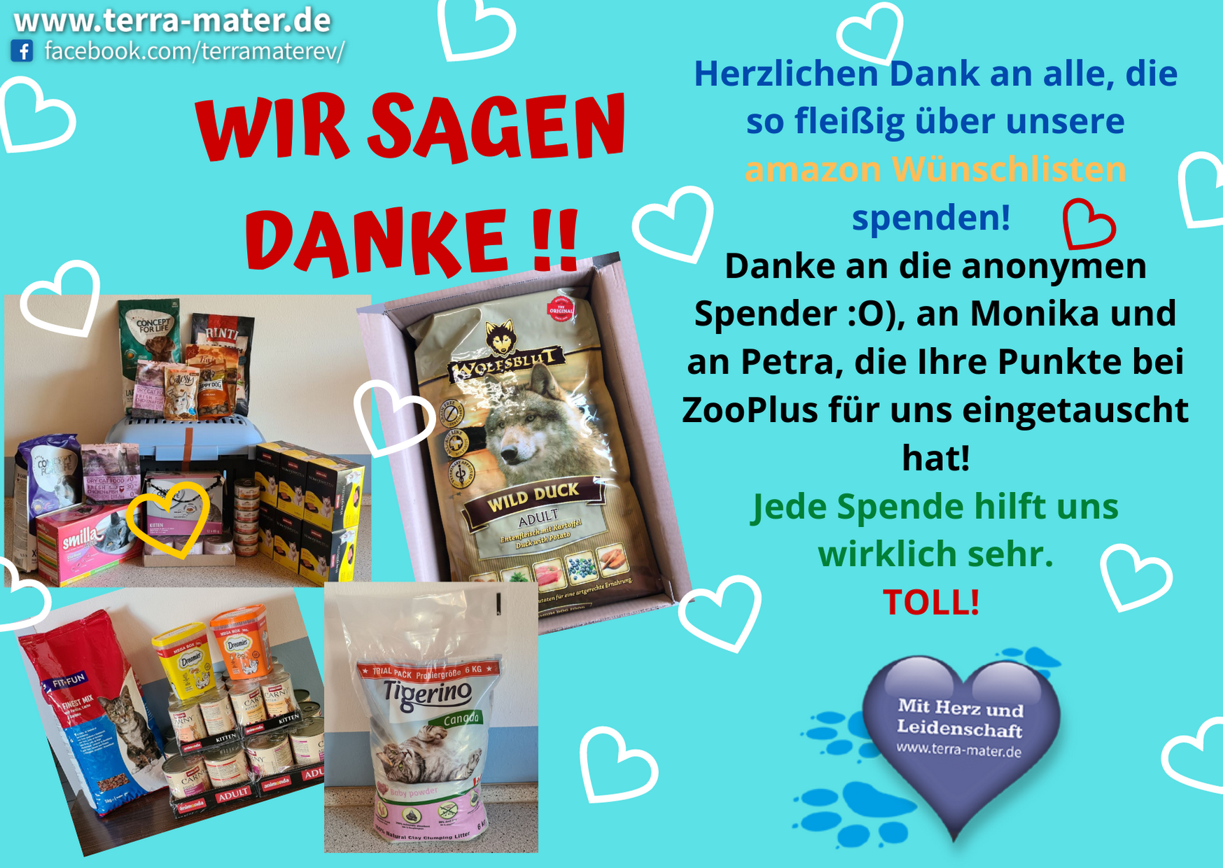 Wir freuen uns sehr, wenn Sie uns gerade in dieser Zeit mit einer Spende unterstützen oder schauen Sie gern auf unsere Amazon Wunschliste für unsere Tierauffangstation in Lustadt , Amazon Wunschliste unserer Reptilienstation in Graben-Neudorf oder auf unsere Amazon Wunschliste für unser Tierheim in Guben.