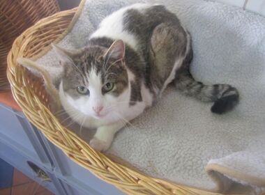 Omchen kam 2011 als ca. ein halbes Jahr altes Kätzchen zu uns. Sie stammt von einer sehr wilden Mutterkatze und konnte sich nie richtig an Menschen gewöhnen. Inzwischen ist sie nun schon sehr lange in unserem Tierheim und lebt aber glücklich und zufrieden zusammen mit den anderen Katzen im großen Freigehege.