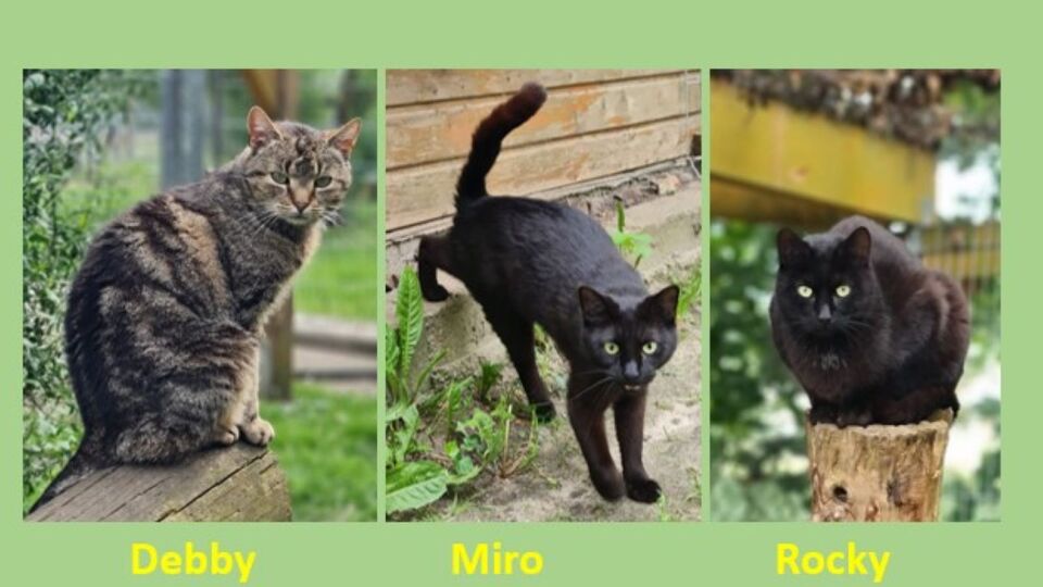 Katze Debby (ca. 2017 geb.), Miro (ca. 2022 geb.) und Rocky (ca. 2022 geb.) kamen als Fundtiere in unser Tierheim nach Guben.