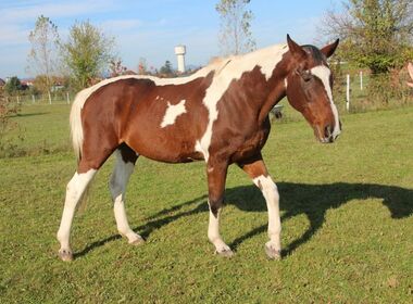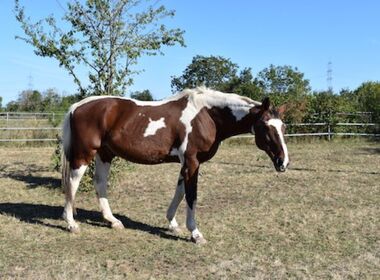 Brisko ist ein wunderhübscher Pinto- Wallach. Seine Menschen konnten ihn aufgrund von Krankheits- und Todesfällen nicht mehr versorgen. So kam Brisko zu TERRA MATER. Der Wallach ist nicht mehr reitbar, da er eine Steifigkeit in der Hinterhand hat.