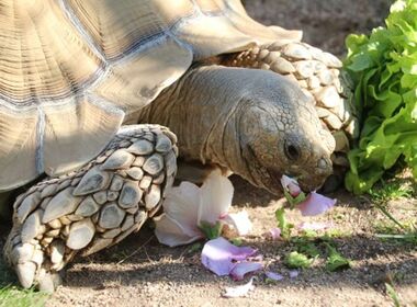 Spornschildkrötenmännchen Lotti wurde erst für eine weibliche, griechische Landschildkröte gehalten. Der Irrtum flog auf, als er wuchs, denn er ist eine männliche Schildkröte, die ihren Namen als vermeintliches Weibchen von der Vorbesitzerin erhielt. Weil er nicht mehr artgerecht gehalten werden konnte, lebt er seit 2008 bei TERRA MATER in der Reptilienauffangstation in Graben-Neudorf.
