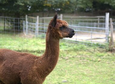 Koppar ist ein erwachsener Alpakahengst, vermutlich zwischen 4 und 6 Jahre jung. Er stammt aus einer großen Herde und ist gut sozialisiert mit Artgenossen. Er ist nicht scheu, aber kein direktes Handling gewohnt.